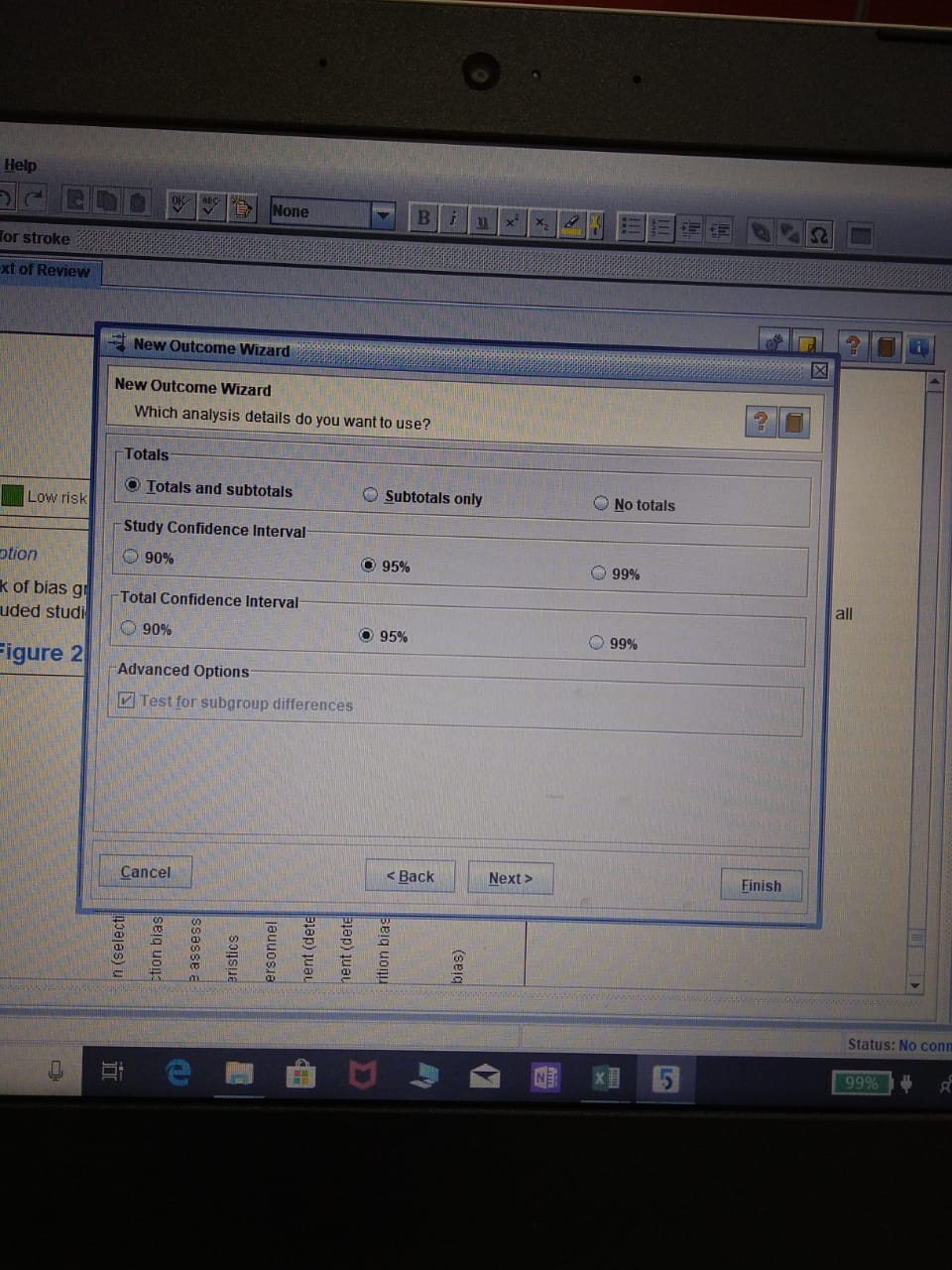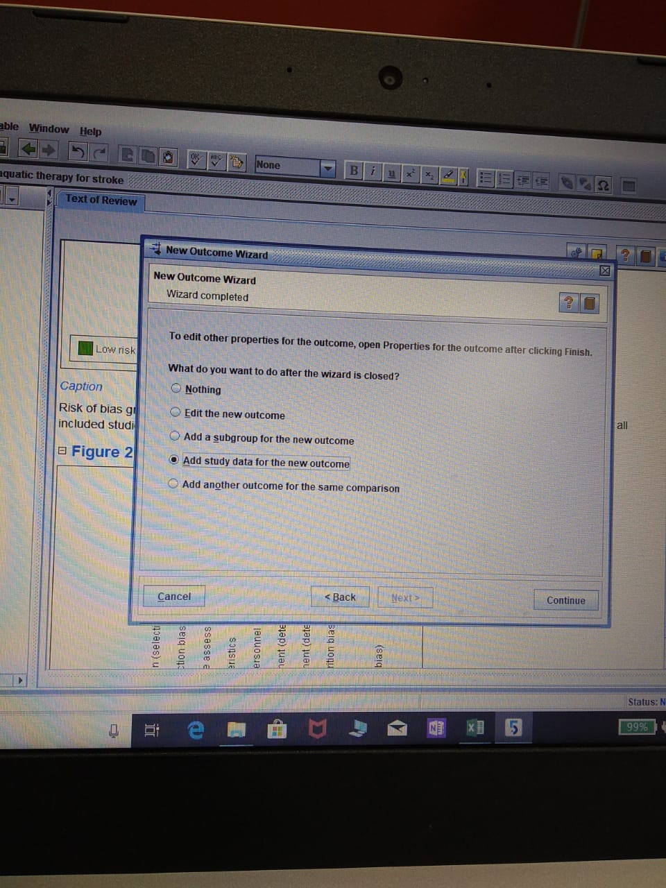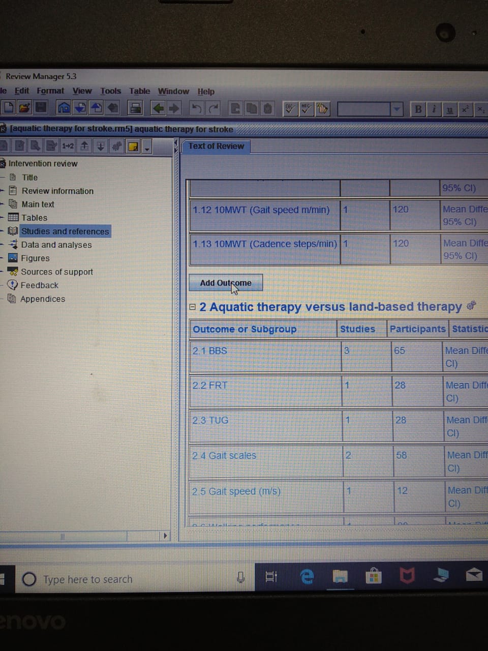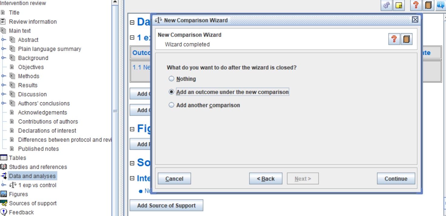 5. After adding all the studies, click on add outcome – under data and analyses option