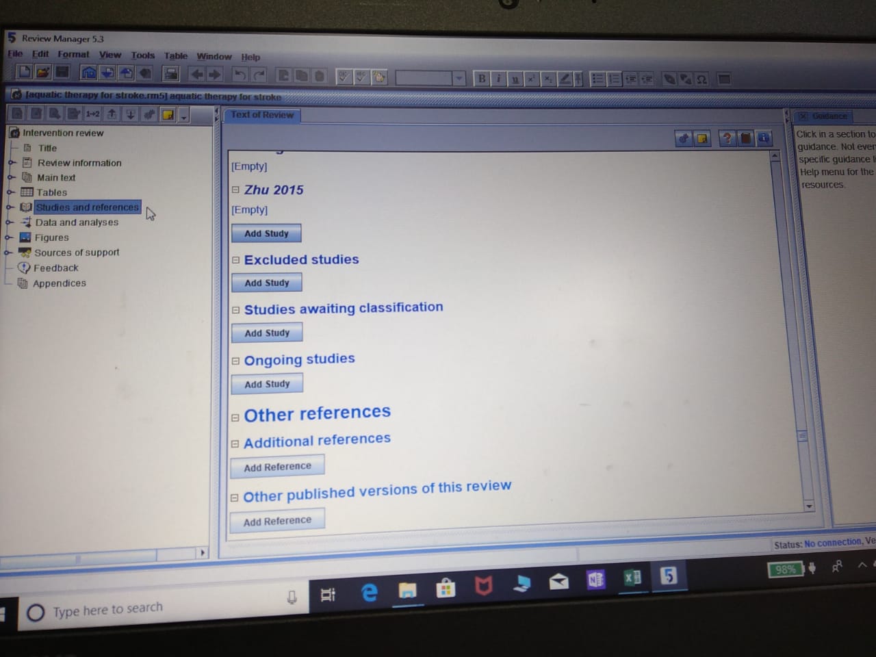 3. After opening the file, click on the study and references option as shown below and add study under characteristics of included studies