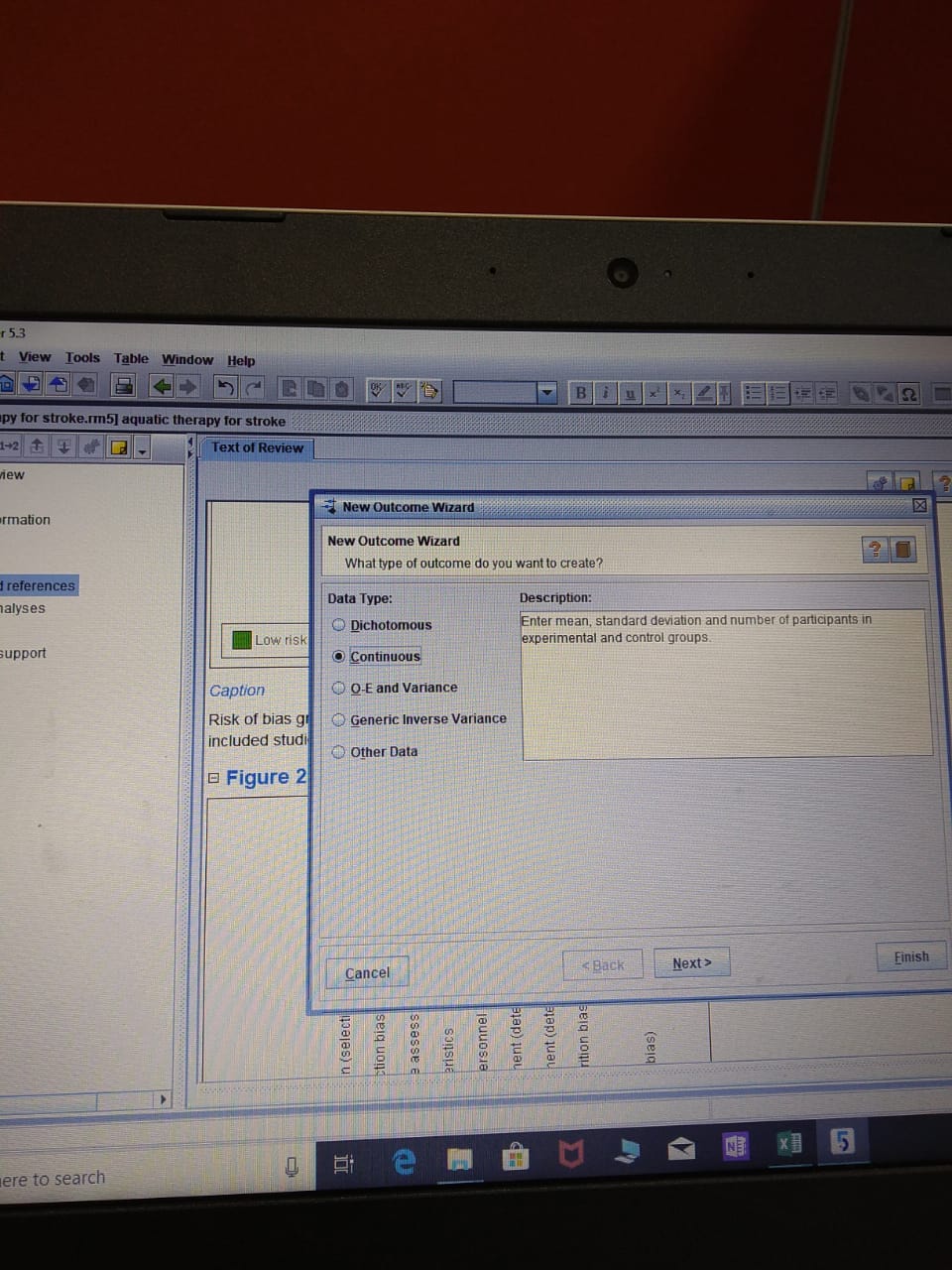 8. Click on next and enter the outcome measure which you are analyzing. Eg. Gait speed