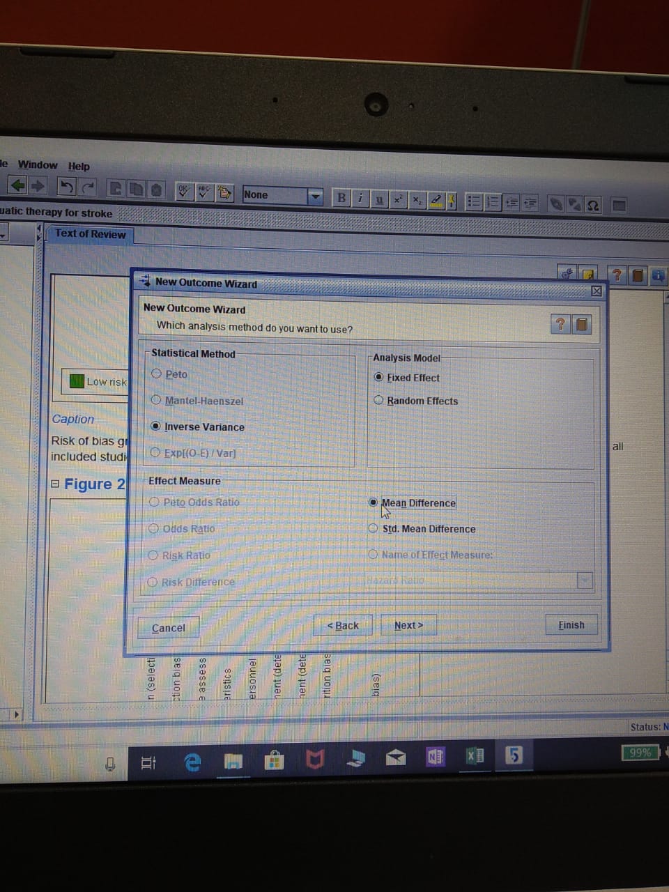 9. Click on next. Depending on the type of analysis you wish to perform, click on either fixed effect or random effect; mean difference or standard mean difference.